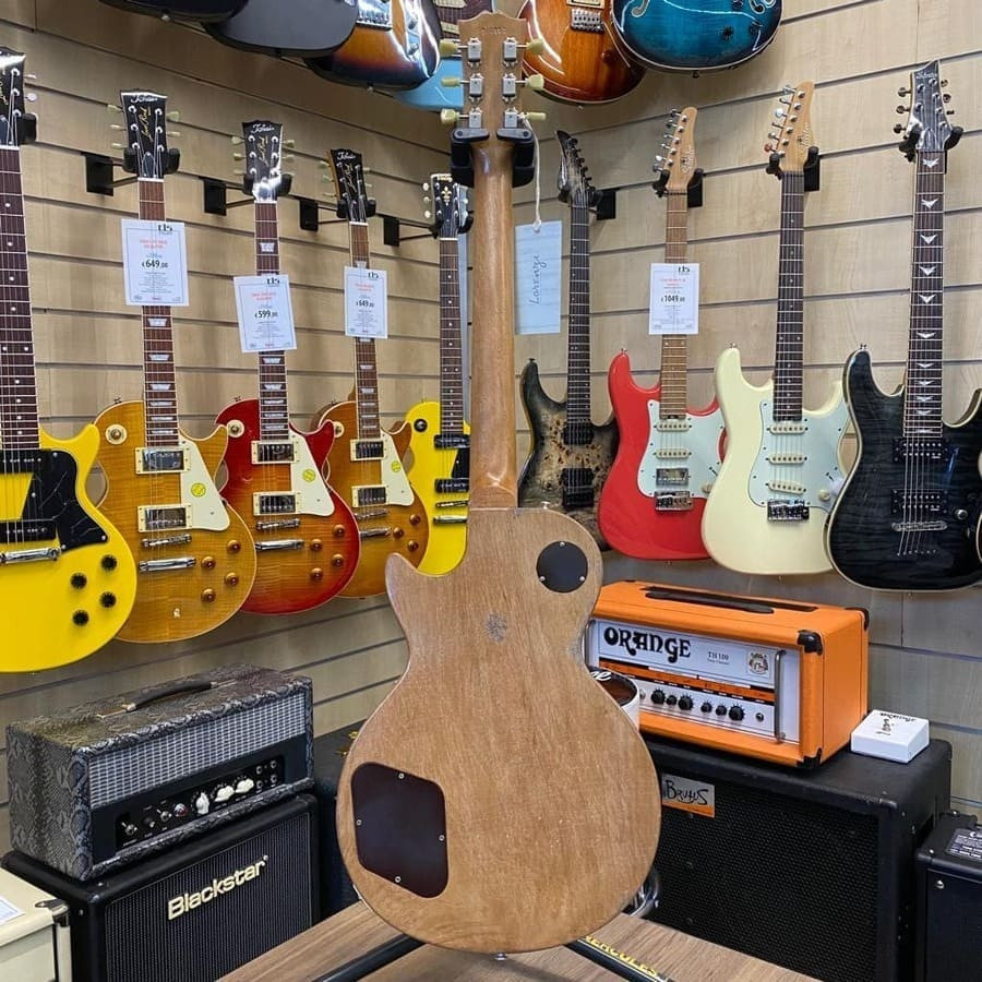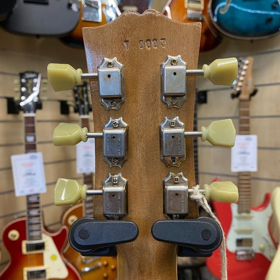 - Binding: top 5 strati (avorio/nero), fondo 1-strato (avorio), manico 5 strati (avorio/nero), paletta 5 strati (avorio/nero), buche "F" 1-strato (avorio/nero)