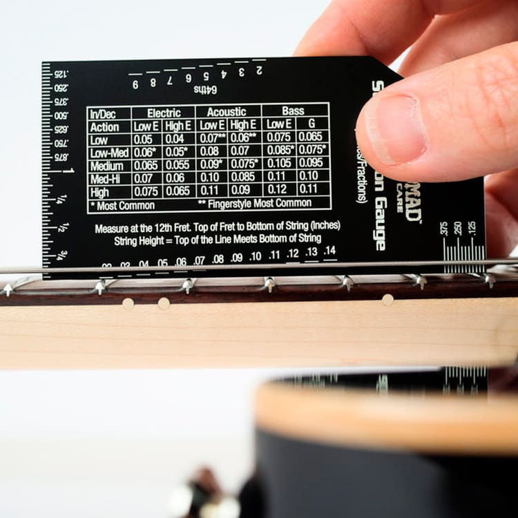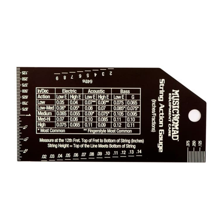 Essere abili a misurare l’action è un passaggio fondamentale nel processo di settaggio dello strumento. Music Nomad MN602 è formato da misure accuratissime stampate in bianco su fondo nero per un contrasto ideale per la facilità di lettura. Realizzato con acciacio inossidabile, permette l’utilizzo prolungato garantendo la nitida lettura anche dopo molto tempo di utilizzo.