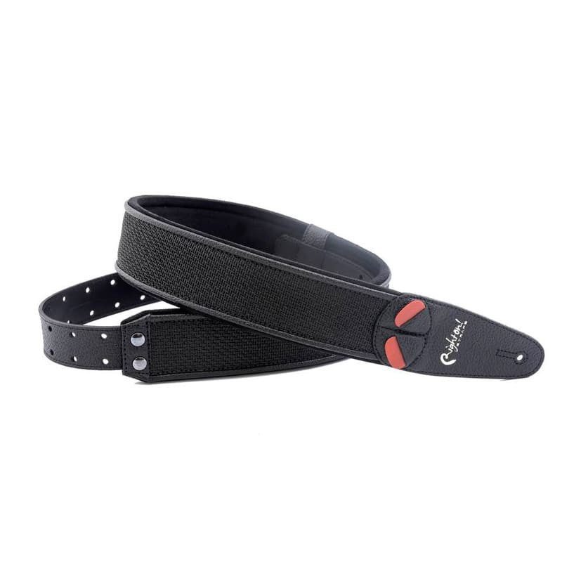 Tracolla realizzata in modo artigianale con materiali ecologici ad alta tecnologia rispettosi dell’ambiente e priva di qualsiasi tessuto animale, caratterizzata da finiture curate in ogni dettaglio, decorazioni che riprendono i tessuti utilizzati nei frontali cassa degli amplificatori Vox 40W , imbottitura in lattice ad alta densità (5 mm), sistema di regolazione RAS, porta plettri incorporato. Colore nero, larghezza 6 cm, lunghezza regolabile da 95 cm a 143 cm, ultra leggera. Indicata per chitarra e basso.